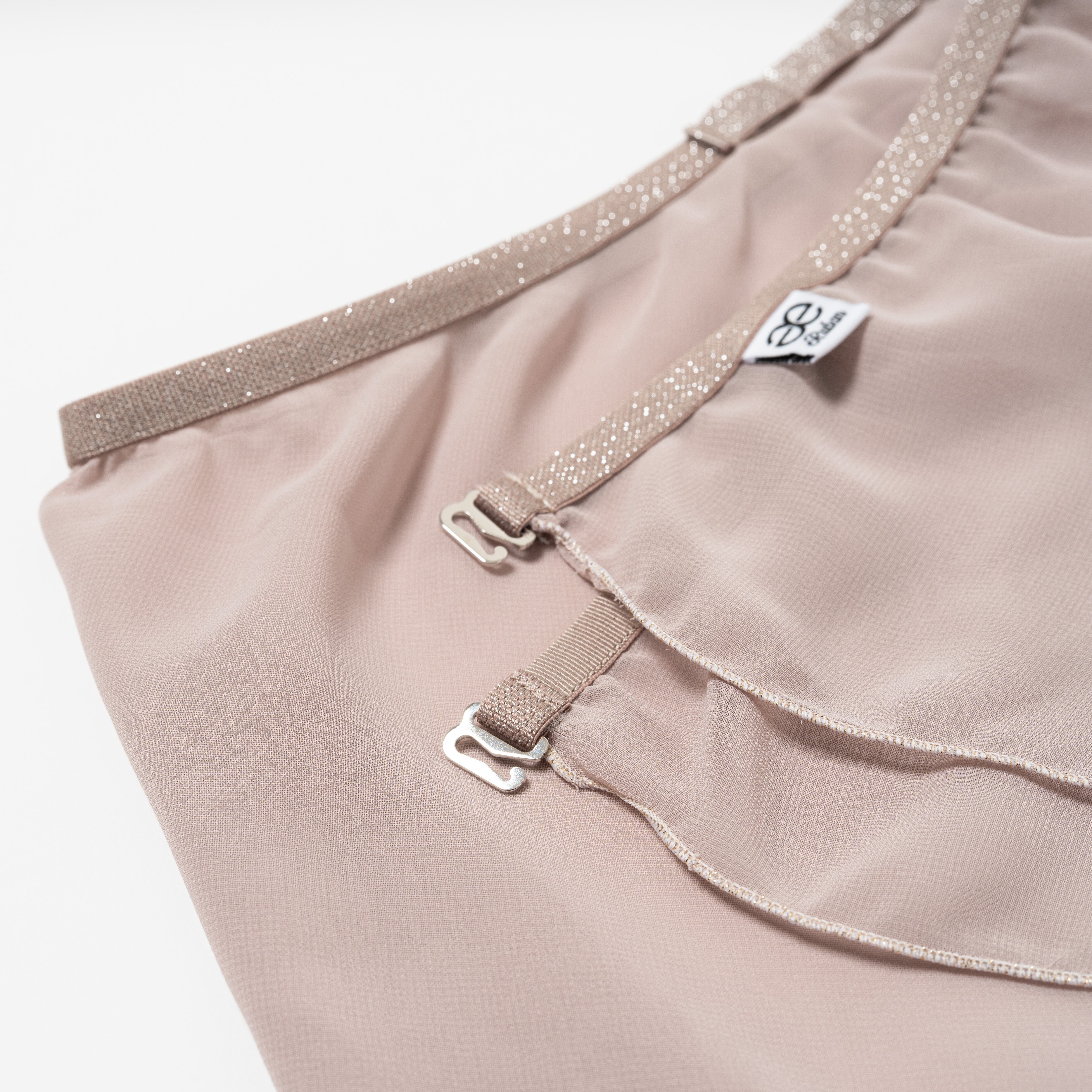 ウエスト部分のゴム、及びスカートの縁がラメになっている巻きスカートです。